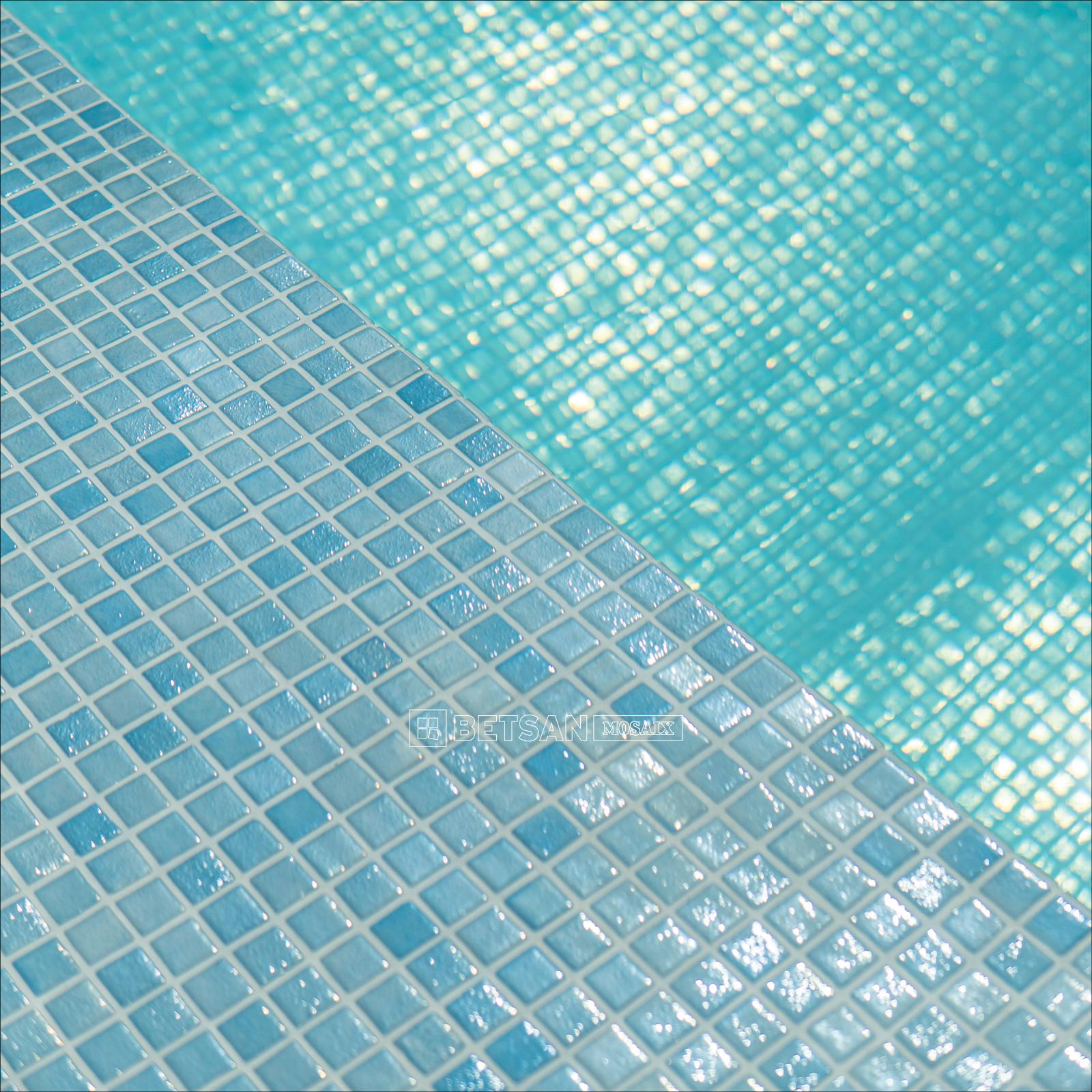 Quattro Combination AF01 Mix 25x25mm. The AQUA Collection is the result of recent research by Betsan glass mosaics. The state-of-the-art production process and matte and glossy surface finishes make the AQUA pool glass mosaic collection unprecedented in terms of realism.