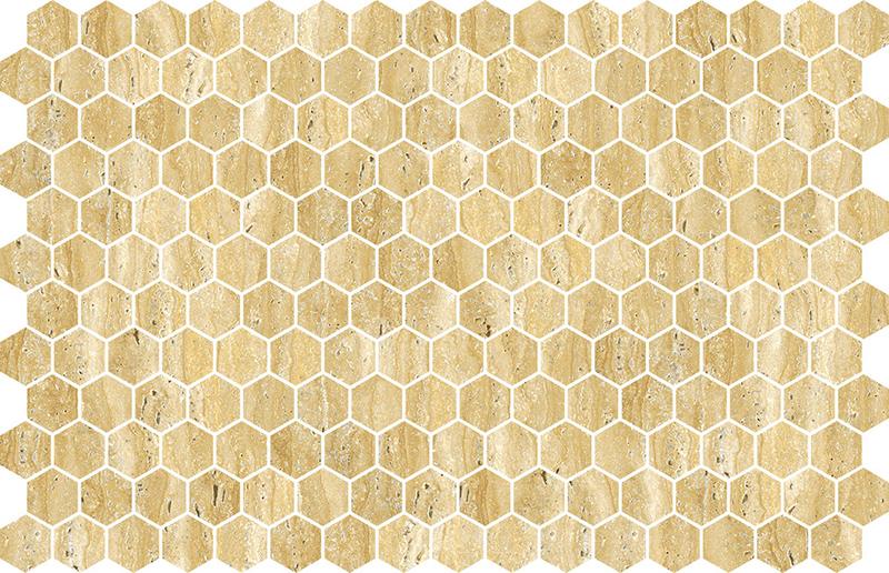Mosaico de vidrio hexagonal Hexa Sand Stone 30x34mm. La oficina de diseño Betsan Mosaix combina la excelencia estética y el más alto rendimiento en una sola colección. La misión de Decozone se basa en los valores del equipo de Betsan Design: soluciones finas y decorativas enriquecidas con opciones de color únicas y efectos.