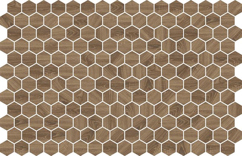 Mosaico de vidrio hexagonal Hexa Wood Fenix Dark 30x34mm. La oficina de diseño Betsan Mosaix combina la excelencia estética y el más alto rendimiento en una sola colección. La misión de Decozone se basa en los valores del equipo de Betsan Design: soluciones finas y decorativas enriquecidas con opciones de color únicas y efectos.